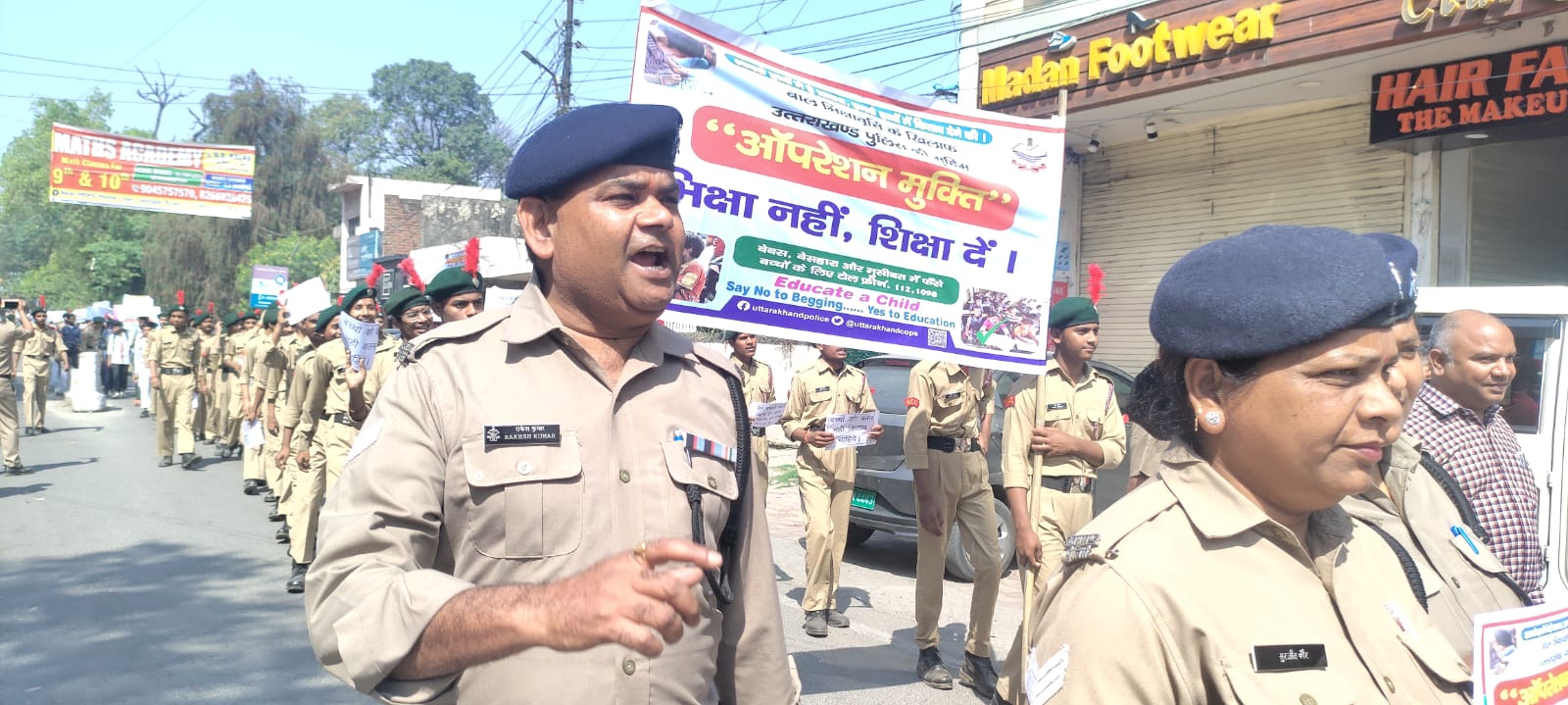 रुड़की, हरिद्वार: हरिद्वार पुलिस ने “ऑपरेशन मुक्ति” के तहत “भिक्षा नहीं, शिक्षा दें” का नारा बुलंद किया है। बाल भिक्षावृत्ति के खिलाफ चलाए जा रहे इस अभियान के तहत, पुलिस ने रुड़की में एक जागरूकता रैली का आयोजन किया, जिसमें छात्रों ने भी बढ़-चढ़कर भाग लिया।