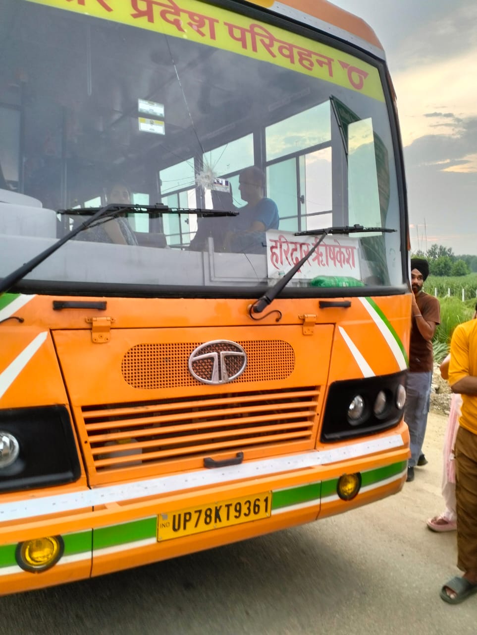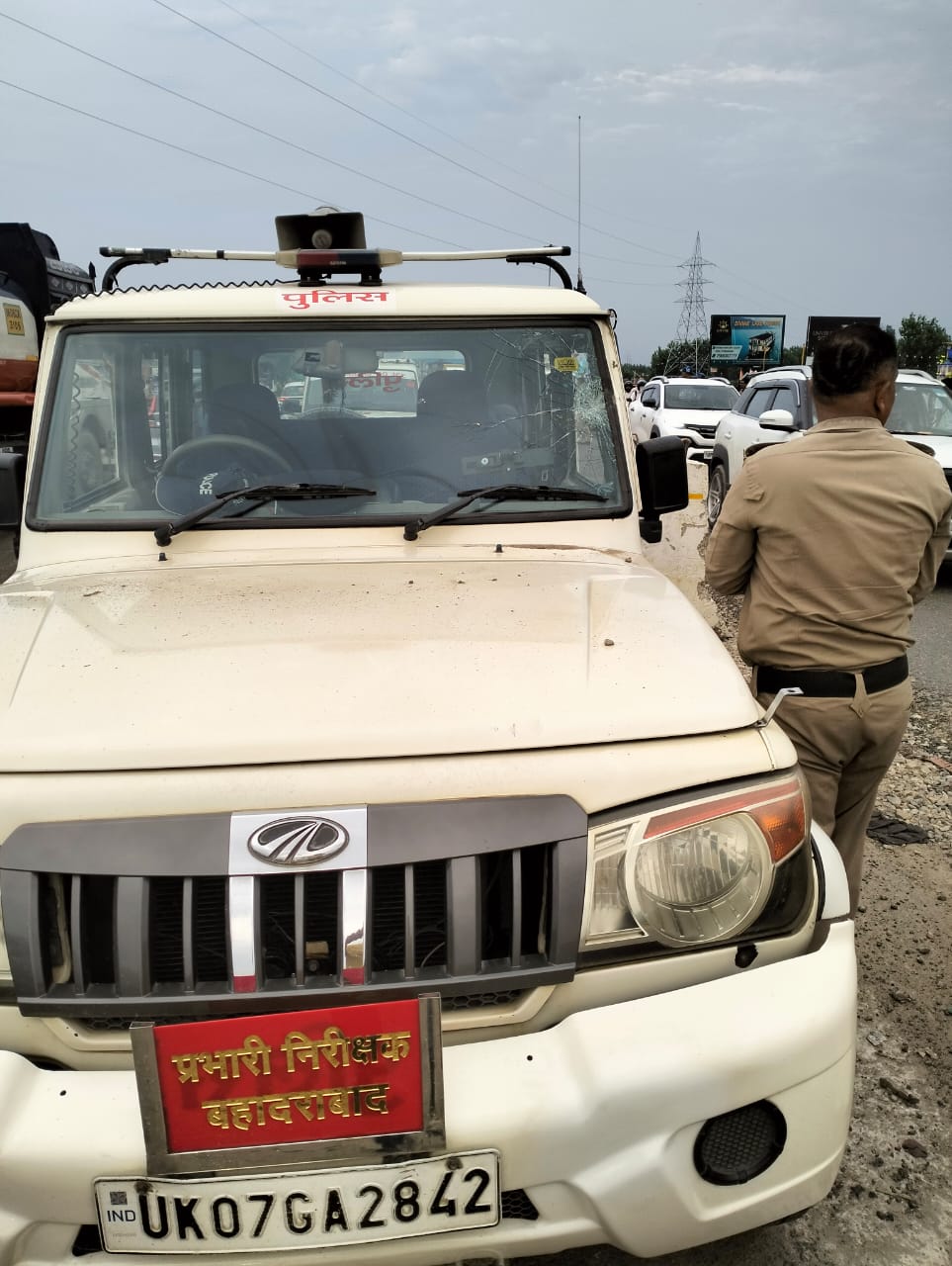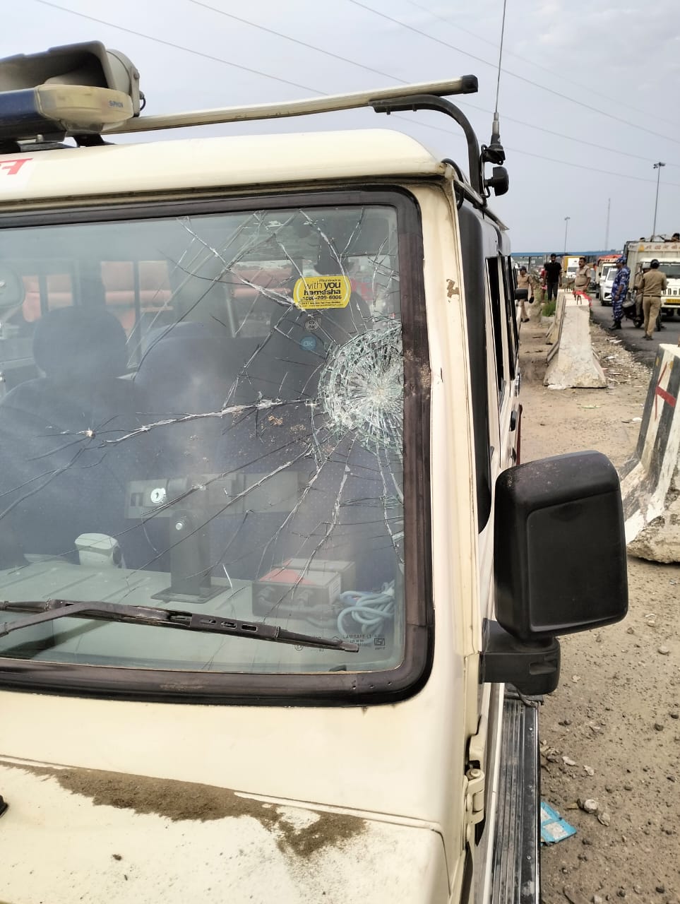 पुलिस वाहन और रोडवेज बस पर पथराव